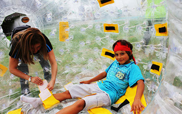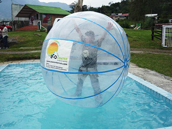 ROLLING BALL Esta actividad te pone a rodar en una gigantesca bola inflable, sólo debes sujetarse los pies, amarrarse las piernas, cogerse la cintura, agarrarse con las manos. Existen dos clases de pelotas, una de agua donde se camina y corre y la de tierra que rueda cuesta abajo.